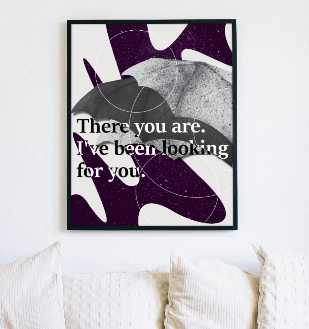 Plakat stworzony dla najwierniejszych fanek serii „Dwór Cierni i Róż”. Velaris, ciemne, fioletowe oczy i zdanie, które śni się po nocach! "There you are. I've been looking for you" - słowa, które każda Fae powinna mieć na ścianie swojej sypialni.